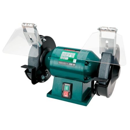 Polizor de banc VERTO 200 W, cu diametrul discului de 150 mm. Proiectat pentru munca usoara in ateliere mici si activitati amatori independente. Ideal pentru ascutirea uneltelor, cum ar fi gaurile si daltile, exista posibilitatea de a instala perii de disc de sarma. Are o carcasa solida cu scuturi anti-spin. Viteza maxima de rotatie a discului fara sarcina este de 2950 rpm. Masina de slefuit este livrata intr-un set cu 2 discuri de macinare A36 si A60.